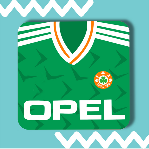 Coaster featuring an Italia 90 jersey design Illustrated and designed in the Maktus Studio! Cool Irish Souvenir. Hard wearing melamine plastic co...
