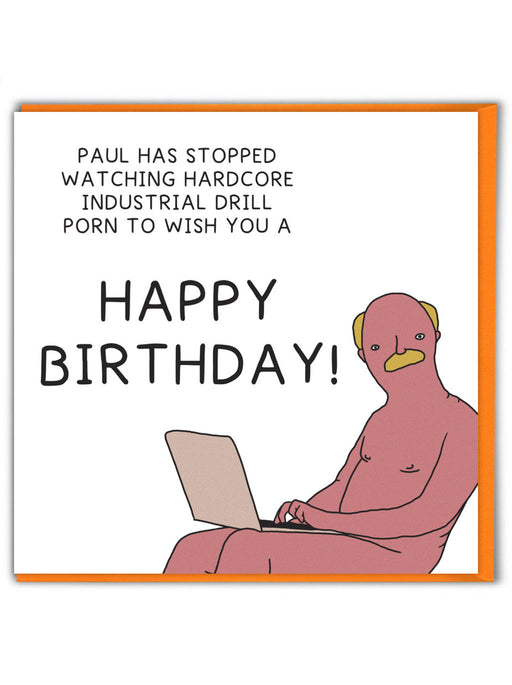 Paul has stopped watching hardcore industrial drill porn to wish you a happy birthday! From Brainbox Candy Blank inside Orange envelope included